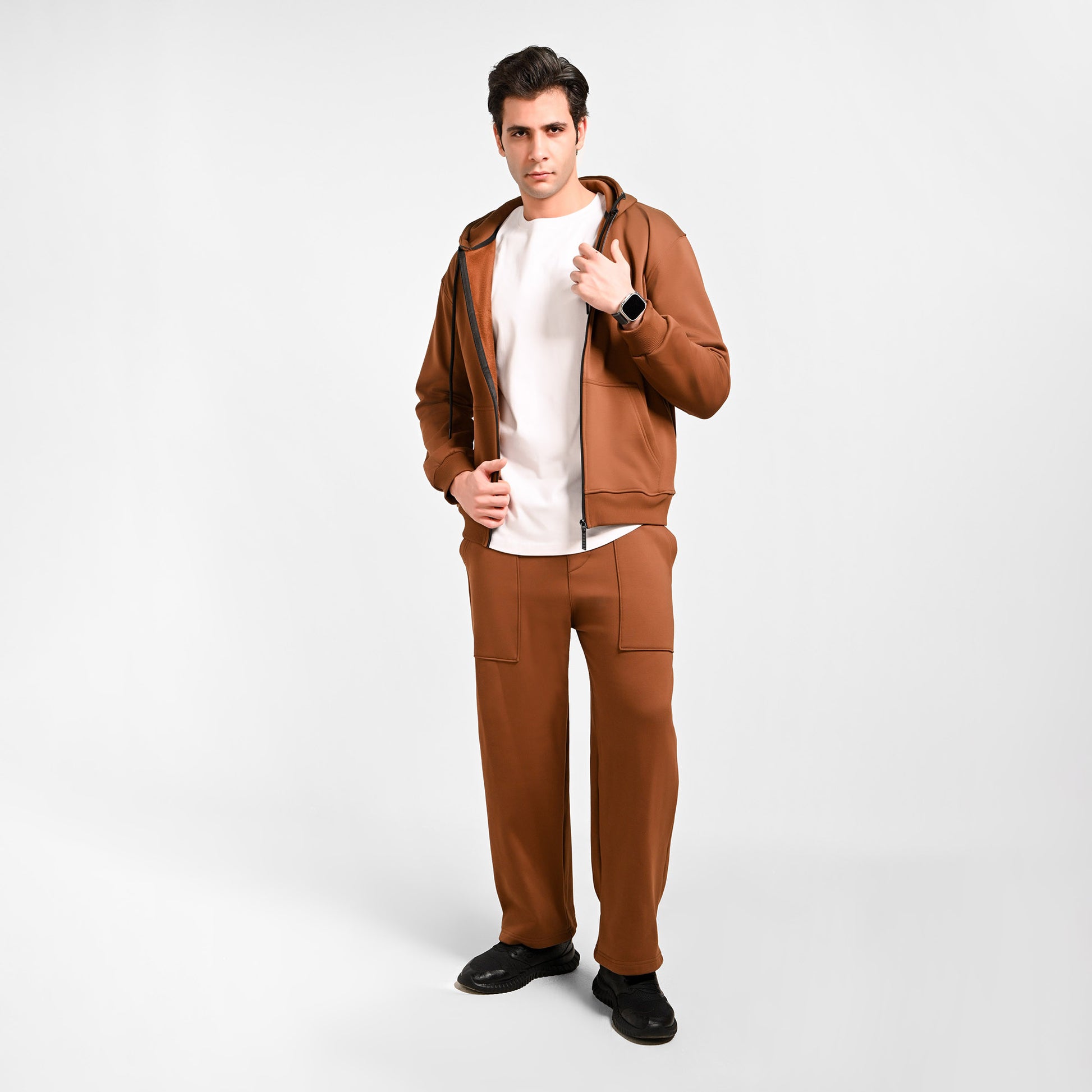 يتكوّن الطقم من بنطلون رجالي شتوي بأقدام واسعة ومبطن بالفرو يوفر الدفء والراحة طوال اليوم، مع تيشيرت بقصة دائرية سفلية يضيف لمسة عصرية ويمنح حرية حركة أكبر، بالإضافة إلى جاكت شتوي بسوستة مغطاة بالجلد ومبطن بالفرو من الداخل ليضمن حماية مثالية من البرودة مع تصميم أنيق.
