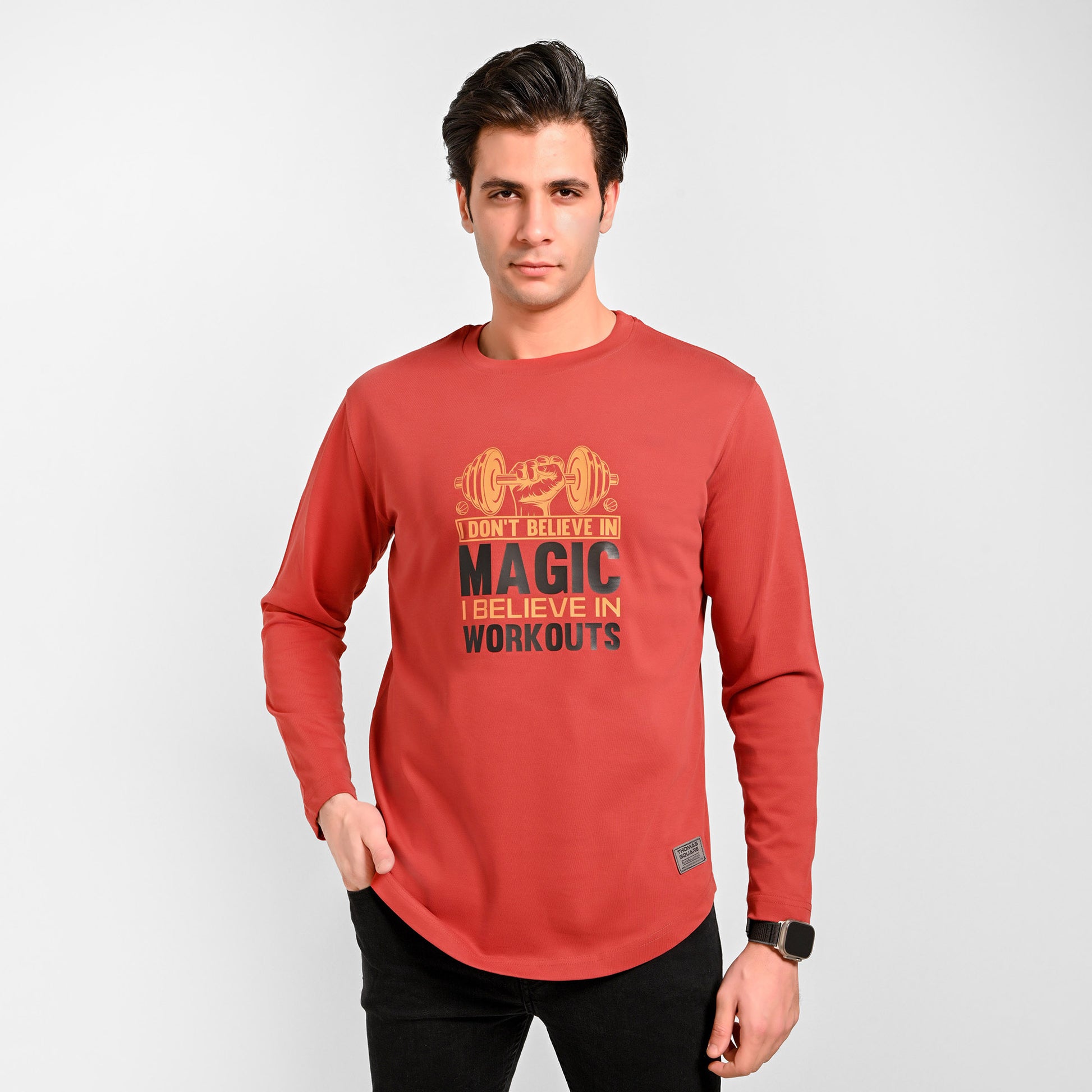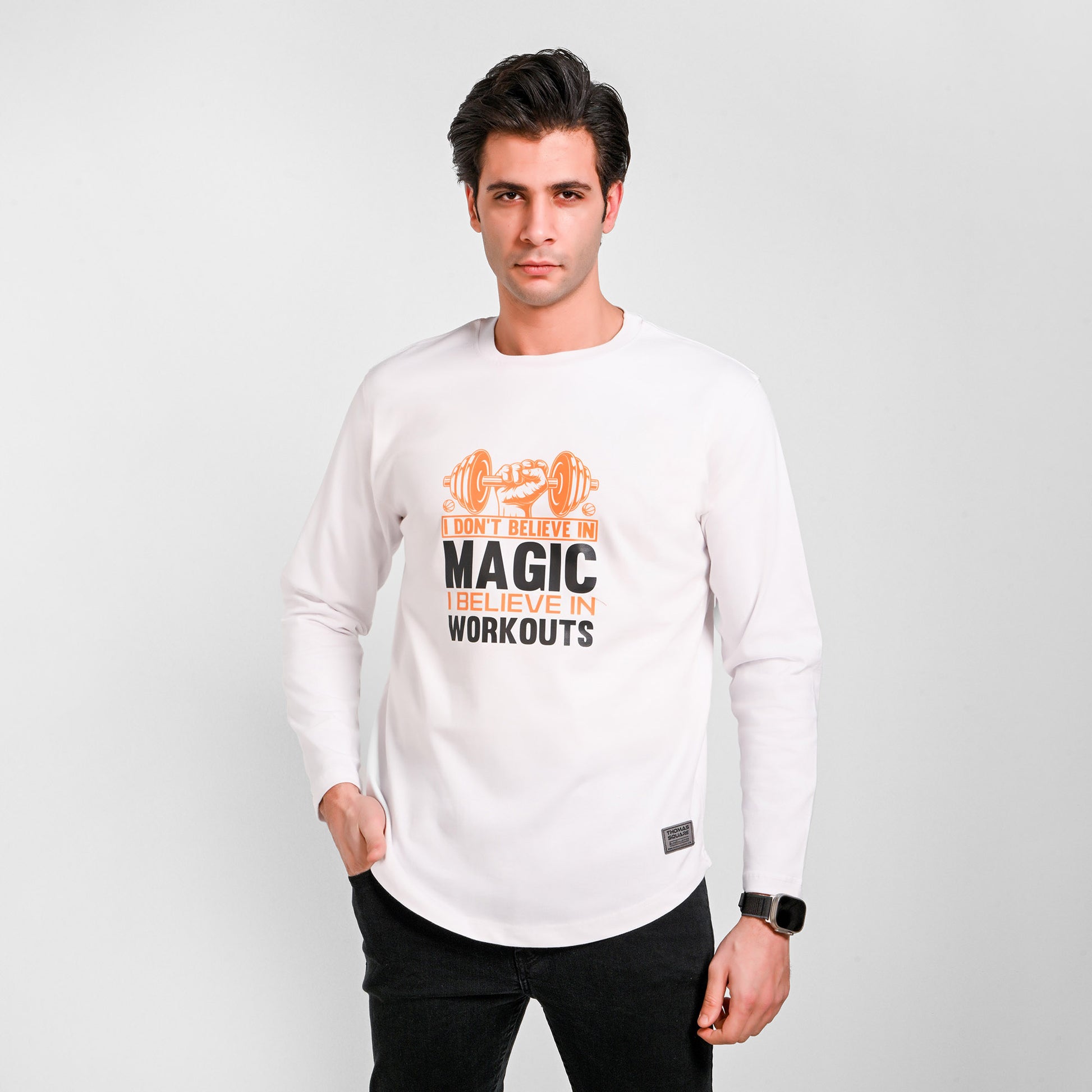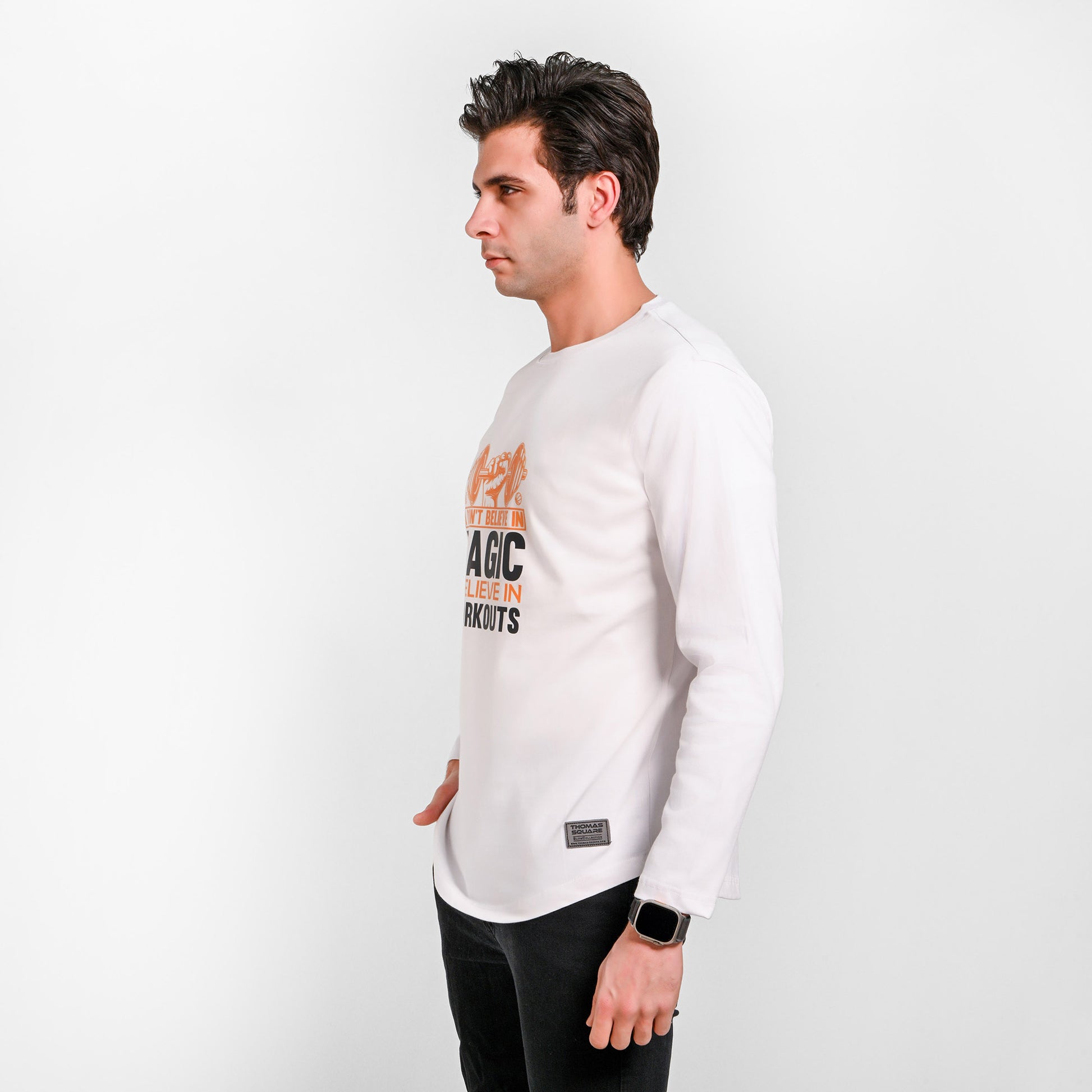 100% Cotton - Long sleeves printed curved T-shirt - Elite collection