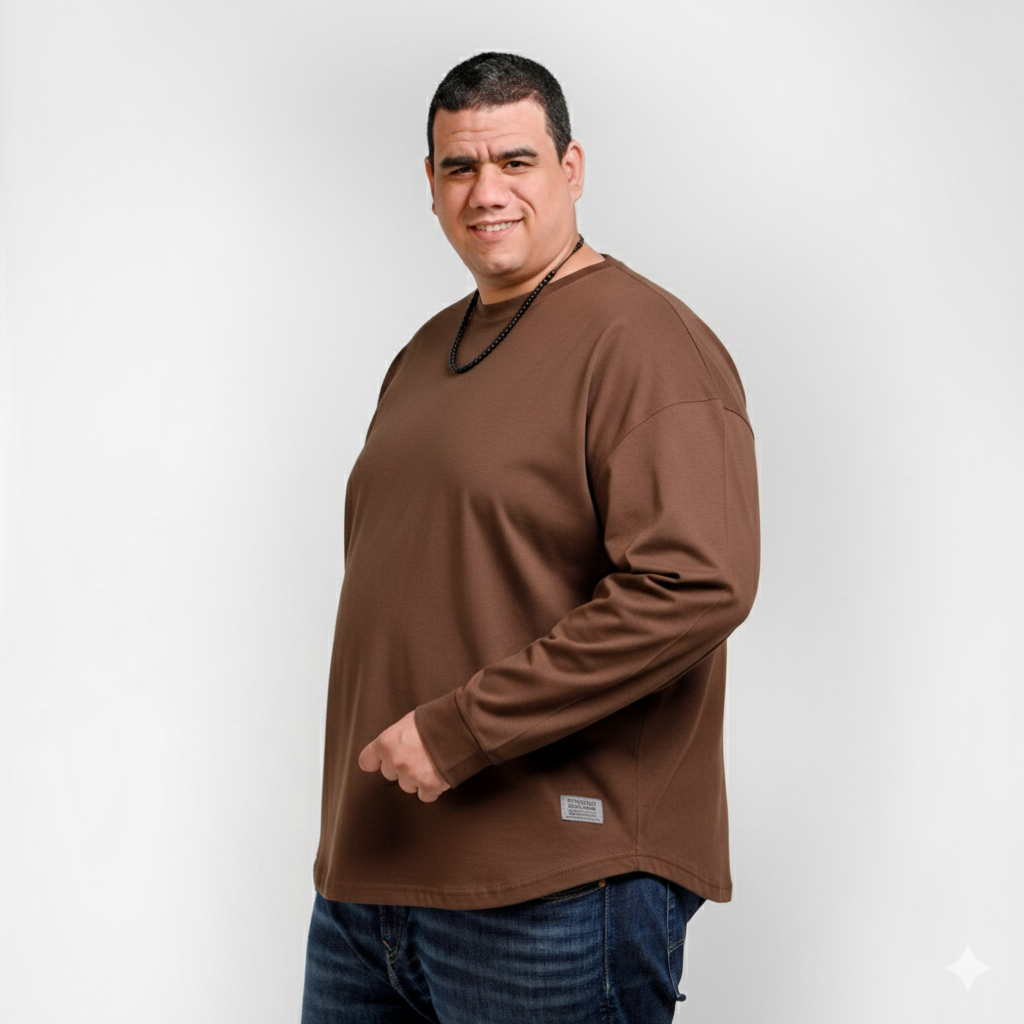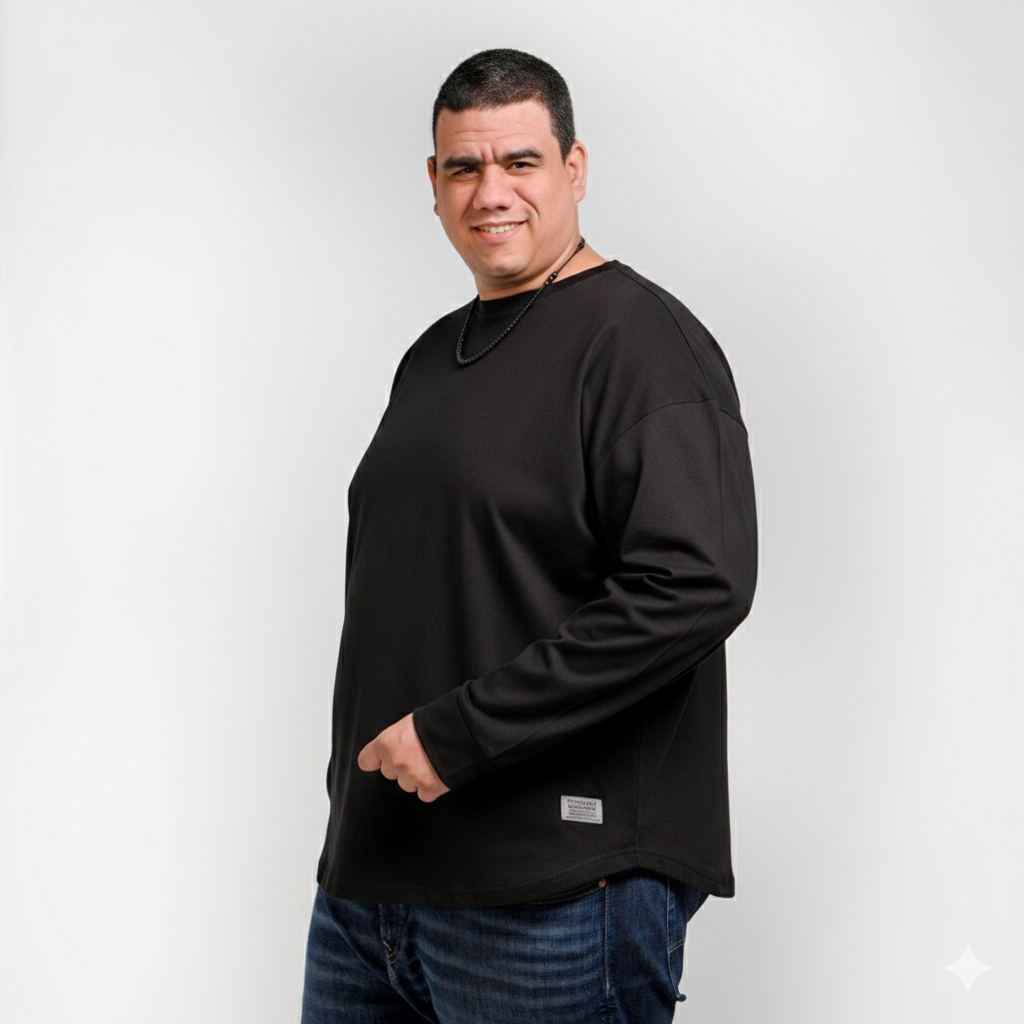 Over Size Curved long sleeves T-shirt - Solid color - BiG-MAN collection